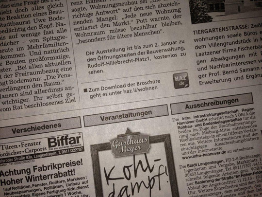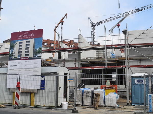 - Der unserem Bauvorhaben gegenüber befindliche Gewerbebau, Sodenstraße 3, ist an unseren Mitbewerber, Firma Lenz Stadthäuser, verkauft worden. Die Firma Lenz wird im Rahmen eines vorhabenbezogenen B-Planes ebenfalls anspruchsvolle Eigentumswohnungen bauen. Voraussichtlich ab 2014, also nach der geplanten Fertigstellung unseres Carré Sodenstraße werden dort die Arbeiten (Abbruch der vorhandenen Gewerbehalle etc.) beginnen.