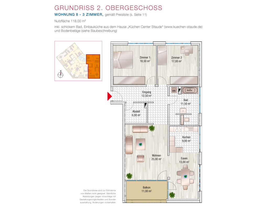 - Änderungen der Gestaltung im Bad mit Keramiken, Fliesen, bzw. und auch den Bodenbelägen können Sie als Kunden natürlich vornehmen. Auf Wunsch können Sie sich gerne mit unserer Innenarchitektin beraten, um Ihren eigenen Stil, Ihr Design und Ihren Geschmack im neuen Zuhause wiederzufinden.